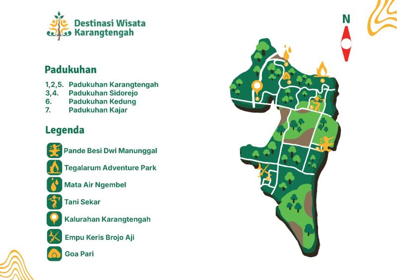 Seperti beberapa contoh destinasi wisata unggulan Karangtengah yang sudah ada seperti, Tegal Arum adventurepark, pande besi Dwi manunggal, Pertanian Tani Sekar, Besalen Brojo Aji, maka ini semua yg tentunya perlu dan selalu jadi sentuhan dalam kembangan berinovasi dengan tata kelola dan SDM juga pemasaran dalam kemasan yang baik sehingga di mungkinkan produk paket wisata yang kreatif tersebut bisa bersaing dan bernilai jual.